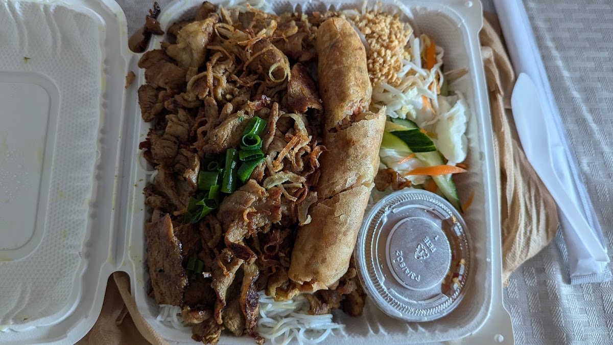 This is my second time coming back for the grilled beef rib rice dish. The lemongrass marinade is very fragrant, the flavor is well-balanced, the ribs are delicious, and the meat is tender. Add a bit of salad and enjoy it with hot rice — all the flavors blended together perfectly and filled my hungry stomach after a tiring workday. I’ll definitely come back to support this restaurant many more times. Oh, and don’t forget to try the spring rolls too — they’re guaranteed to be delicious!